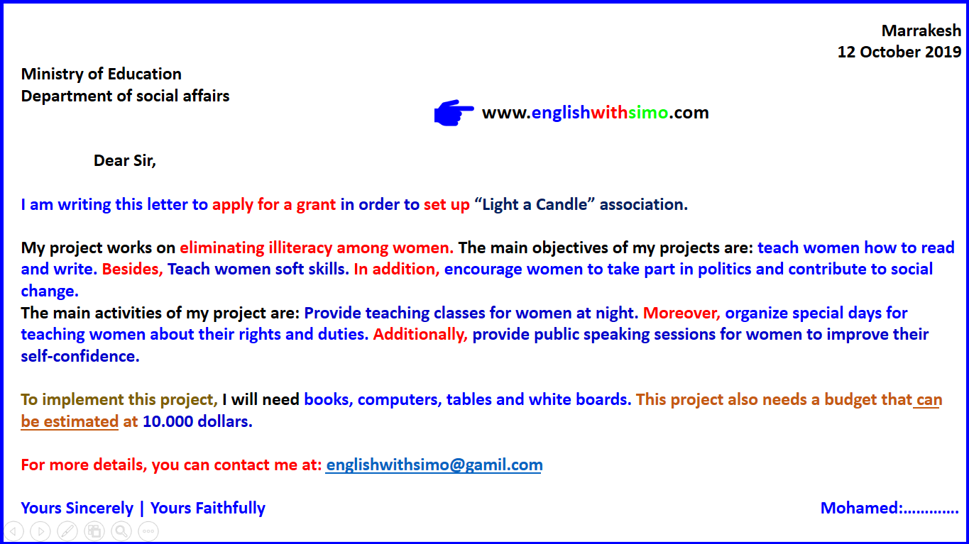 How To Write A Formal Letter To Apply For A Grant كتابة رسالة رسمية لطلب منحة English With Simo